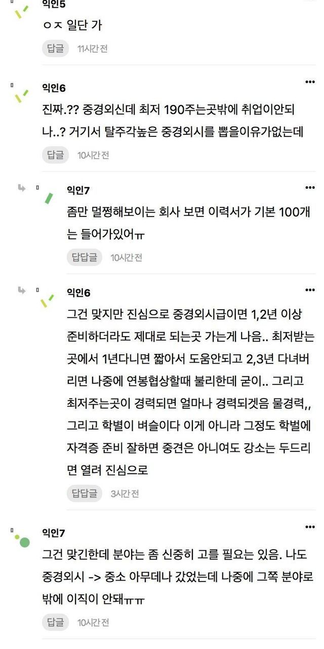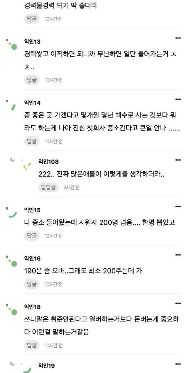 취준생들아 월급 190 주는 중소라도 일단 들어가..