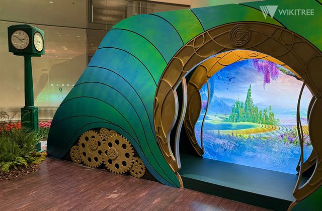 영화 위키드 팝업스토어 in 더현대에 준비된 공간은 여기서 끝이 아니다. 탑승했던 기차에서 내린 뒤, 벽에 그려진 엘파바를 따라 이동하면 마침내 강력한 힘이 담긴 마법책 ‘그리머리’와 세계관 최강자 ‘오즈의 마법사’를 만날 수 있다.