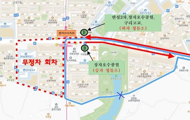 이에 시는 구리시와의 적극적인 협의를 거쳐 장자초등학교에서 좌회전해 장자호수공원역으로 돌아오는 경로로 노선을 다시 변경했다.