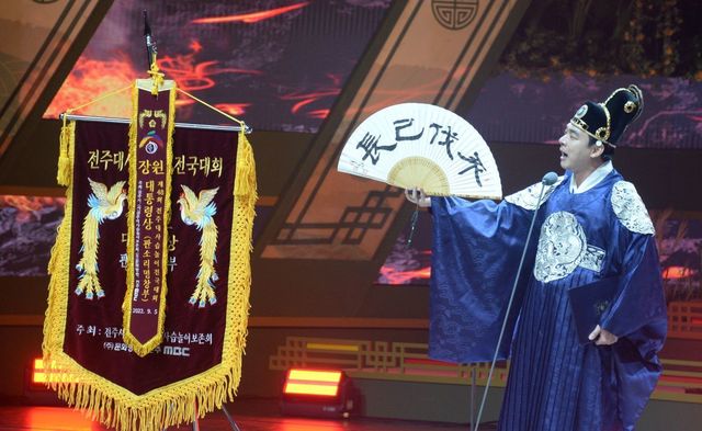 제48회 전주대사습놀이 전국대회가 열린 2022년 전북 전주시 국립무형유산원에서 판소리명창부 장원을 차지한 박현영 씨가 앙코르 무대를 펼치고 있다. / 뉴스1