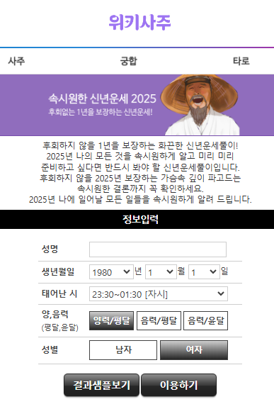 위키사주 속시원한 신년운세 2025 화면 / 위키사주