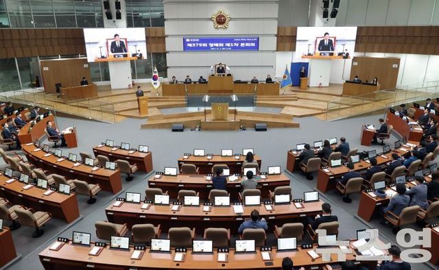(경기=뉴스영 공경진 기자) 경기도의회 제379회 정례회가 5일 본회의를 열었지만, 양당 간 갈등으로 인해 개회 직후 정회됐다. 경기도의회는 이날 재적 의원 3분의 1 이상이 출석해 의사정족수를 채웠으나, 전체 의원 과반수를 충족하지 못해 의결정족수를 채우지 못하고 정회됐다.