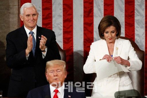 펠로시 전 의장은 트럼프 후보와 악연이 깊다. 그가 대통령으로 재임하던 시절 하원을 통솔하며 두 차례나 탄핵소추를 진행했다. 특히 펠로시 전 의장은 지난 2020년에는 트럼프 대통령의 연두 교서 발표가 끝나자 연설문 사본을 찢으며 반감을 드러내기도 했다. 당시 트럼프 대통령은 하원의장의 소개를 받고 연단에 서면서 펠로시 의장이 청한 악수의 손길을 먼저 외면한 바 있다.