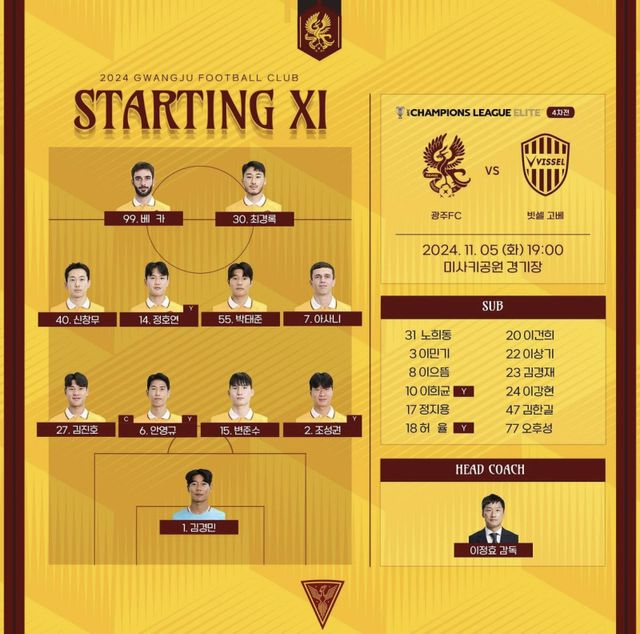 광주는 5일 오후 7시 미사키공원 경기장에서 비셀 고베를 상대로 ACLE 리그 스테이지 4차전 원정 경기를 펼친다.