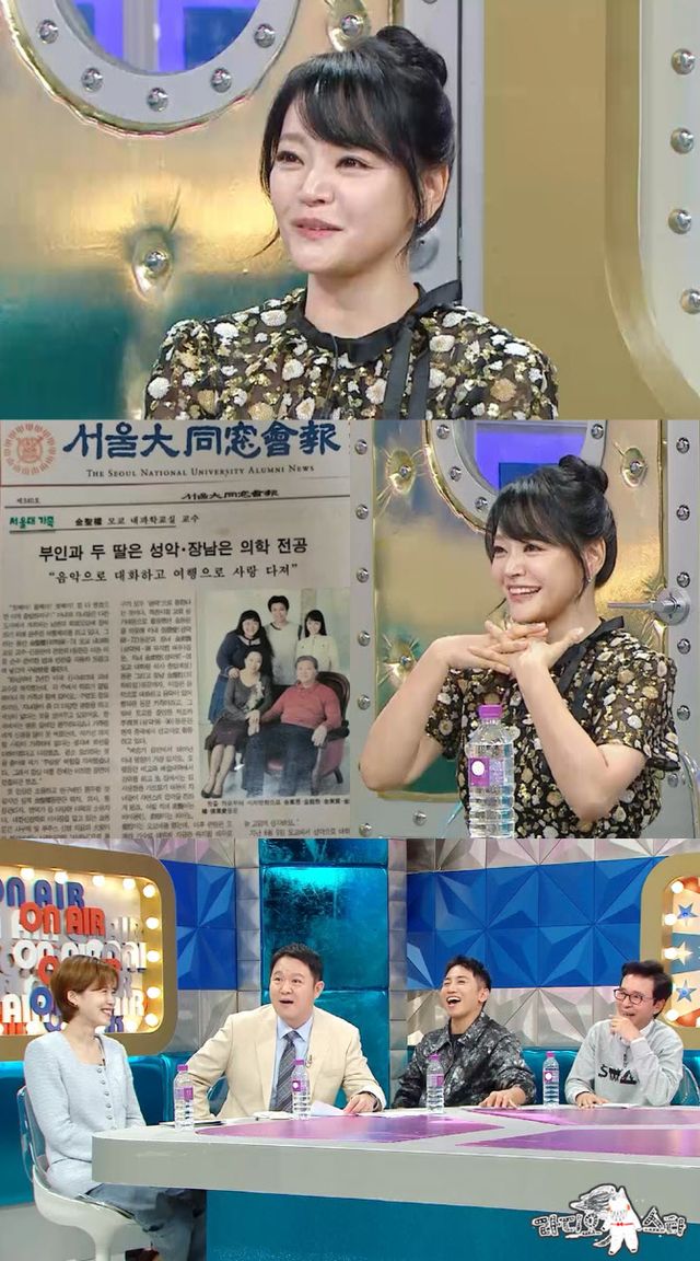 대한민국을 대표하는 뮤지컬 배우 김소현이 ‘라디오스타’를 찾아 가족 얘기를 털어놓는다. 그는 아버지와 남동생은 서울대 의대를 졸업하고 어머니와 본인, 그리고 여동생은 서울대 음대 출신이라는 사실을 밝힌다.