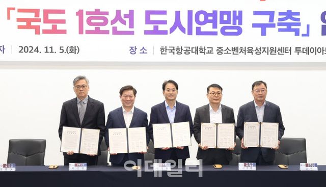 경기 광명시에 따르면 경기 광명·고양·오산, 서울 마포·영등포, 전북 완주군 등 6개 지방정부는 5일 고양시 한국항공대학교 중소벤처육성지원센터에서 ‘지속 가능한 도시 발전을 위한 국도1호선 도시연맹 구축 업무협약’을 체결했다.