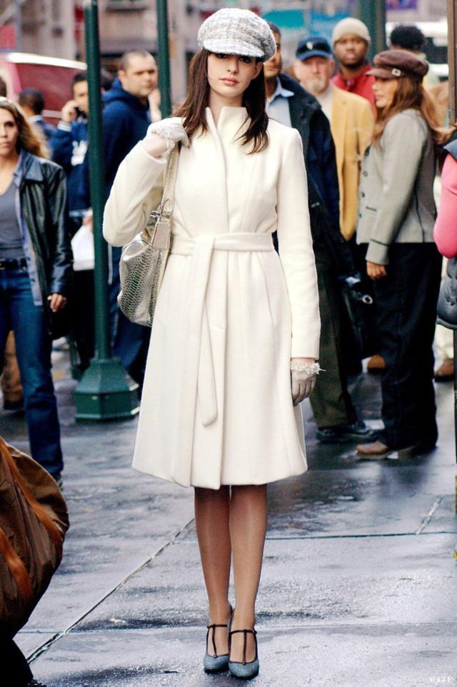 그중에서도 주인공 앤디(앤 해서웨이)가 ‘런웨이’ 지의 일원으로서 괄목할 만한 성장을 이뤄냈음을 상징적으로 보여주는 화이트 코트 룩에 주목해 보세요. 전체적인 컬러와 톤은 맞추되, 각 아이템 소재에는 변주를 주어 재미를 더한 것이 포인트입니다.
