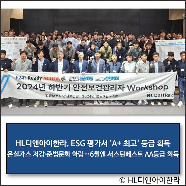 HL디앤아이한라가 한국ESG기준원(KCGS)에서 발표한 '2024년 ESG평가'에서 평가대상 중 최고등급인 'A+'를 획득했다.