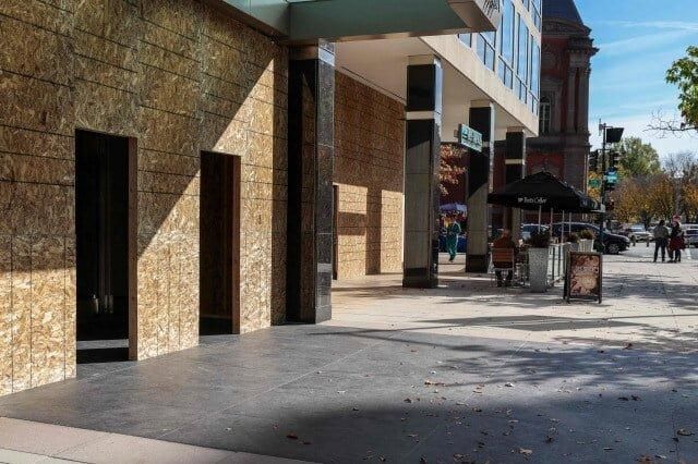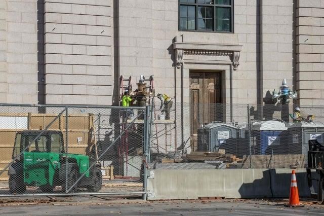 거리거리마다 설치되는 방벽선거 결과 발표와 동시에 일어날 신나는 이벤트에 대비하는 시민들