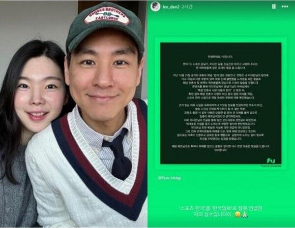 이다은 소속사 FU는 4일 공식 입장을 통해 "이다은이 유튜브 채널 '밉지 않은 관종언니'에 출연해 윤남기의 아버지가 한국일보 사장이라고 언급한 부분에 대해 사실과 다른 부분이 있다"고 밝혔다.