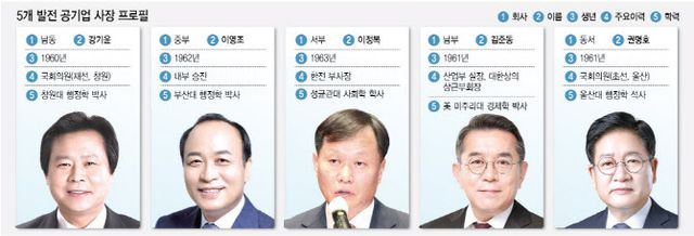 정용기 한국지역난방공사(071320)(한난) 사장과 최연혜 가스공사 사장, 김동철 한전 사장 임명에 이어 남동·동서발전도 각각 본사가 있는 지역 인근 지역구 국회의원 출신이 사장으로 임명됐다.