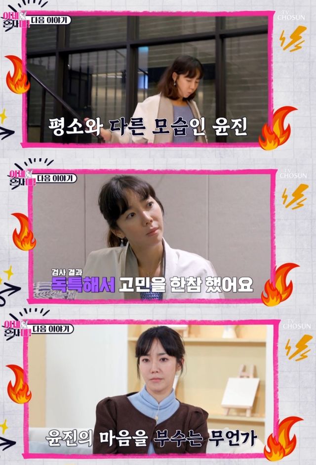 이날 방송에서 가짜뉴스에 대한 고소 여부 상담을 위해 변호사를 만났던 이윤진은 평소와 사뭇 다른 표정으로 정신건강상담에 나서 MC들을 놀라게 했다.