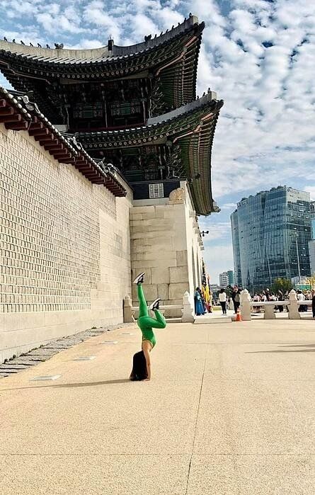 4일 VN익스프레스 보도에 따르면 하노이에 사는 키에우 호아는 경복궁 앞에서 물구나무서기 포즈를 취하고 있는 자신의 모습을 공유했다.