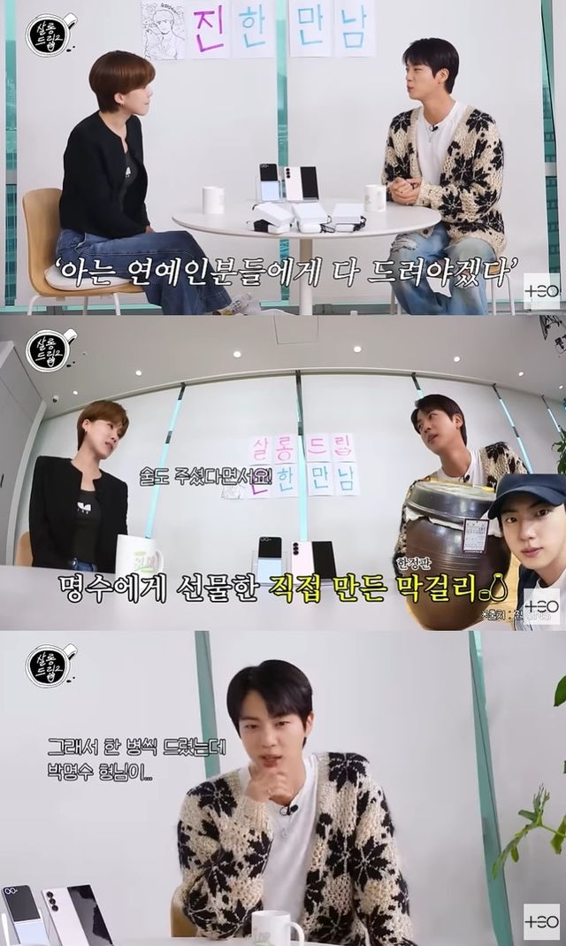 (엑스포츠뉴스 정민경 기자) 방탄소년단 진이 박명수에게 막걸리를 선물한 비화를 공개했다.