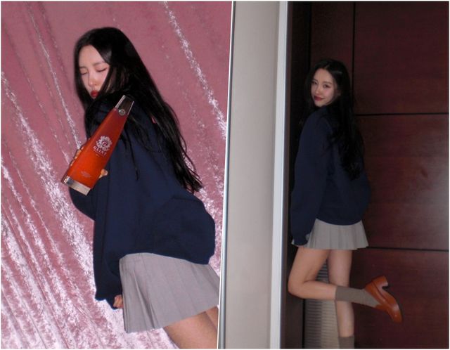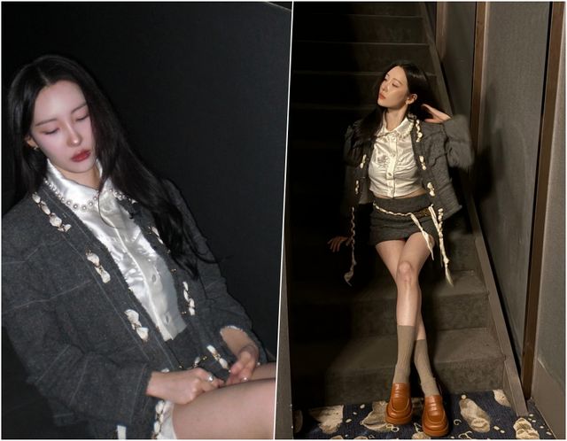 사진 속 선미는 그레이 색상의 재킷과 미니 스커트 셋업을 입은 모습으로, 재킷 속에는 화이트 색상의 블라우스를 선택했다. 블라우스는 몸에 딱 맞춘 듯 선미의 볼륨감이 고스란히 드러나기도 했다.