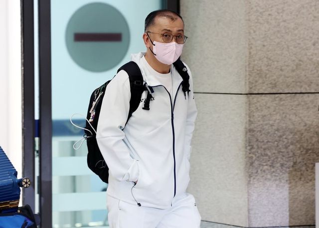 세계배드민턴연맹(BWF) 월드투어 슈퍼 750 덴마크오픈를 마친 김학균 대한민국 배드민턴 대표팀 감독이 지난달 22일 오후 인천국제공항 1터미널을 통해 귀국하고 있다. / 뉴스1