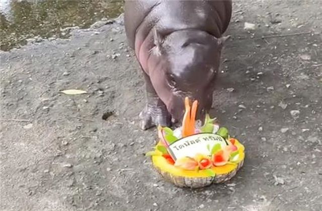 태국 스타 하마 '무뎅'의 모습 / 카오 케오우 동물원 공식 SNS