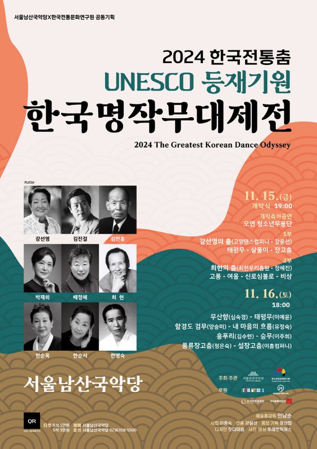 이번 공연은 서울남산국악당과 한국전통문화연구원이 공동기획하고 서울시, 대한무용협회, 우리문화지킴이(회장 김상철), 인사이트모션이 후원한다. 예매는 서울남산국악당 홈페이지에서 할 수 있다. R석 5만원, S석 3만원.