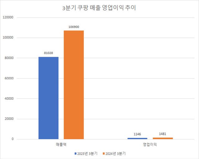 쿠팡은 올 3분기 10조 6900억원의 매출을 기록하며 전년동기대비 32% 증가했다. 역대 최대 분기 매출이었던 2분기(10조 357억원) 기록을 경신했다. 영업이익은 1481억원으로 전년동기대비 29% 늘면서 1개 분기 만에 흑자전환에 성공했다. 앞서 2분기 쿠팡은 공정거래위원회 과징금 선반영에 따라 342억원의 영업적자를 냈다.
