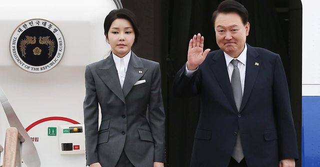 윤석열 대통령과 김건희 여사가 지난달 6일 오전 경기 성남 서울공항에서 필리핀과 싱가포르 국빈 방문과 라오스에서 열리는 한·아세안(ASEAN·동남아시아국가연합) 정상회의 참석차 출국하기 위해 공군 1호기에 올라 인사하고 있다. / 뉴스1