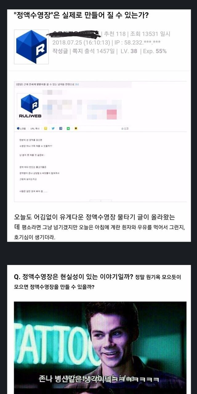 시도때도 없이 올라오던 정액 수영장 떡밥은