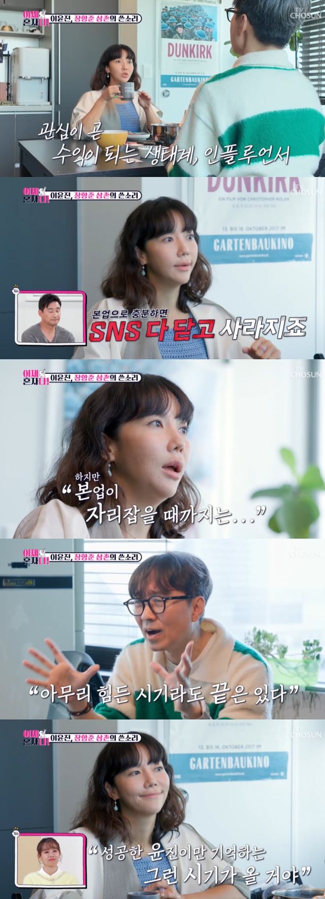 이윤진은 "저도 그 생각한다. 본업으로 수익이 그만큼 나면 모든 거 닫고 사라진다. 그런데 본업이 자리잡을 때까진 SNS가 시드머니가 되어야 한다"고 솔직히 이야기했다.