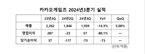 카카오게임즈는 지난 3분기 매출 1939억원, 영업이익 57억원을 기록했다고 6일 밝혔다.