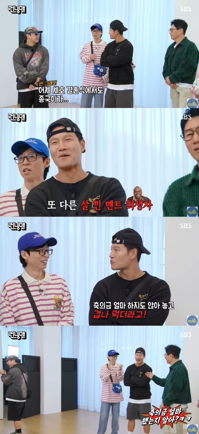 '런닝맨'에서 해당 발언은 예능적인 요소로 풀어지고, 김종국의 독설을 주제로 대화를 나누던 중 나온 부분이다. 이에 출연진 또한 웃음을 터트리며 넘어갔으나 방송 후 김종국의 '축의금' 저격은 네티즌 사이 논쟁으로 번졌다.