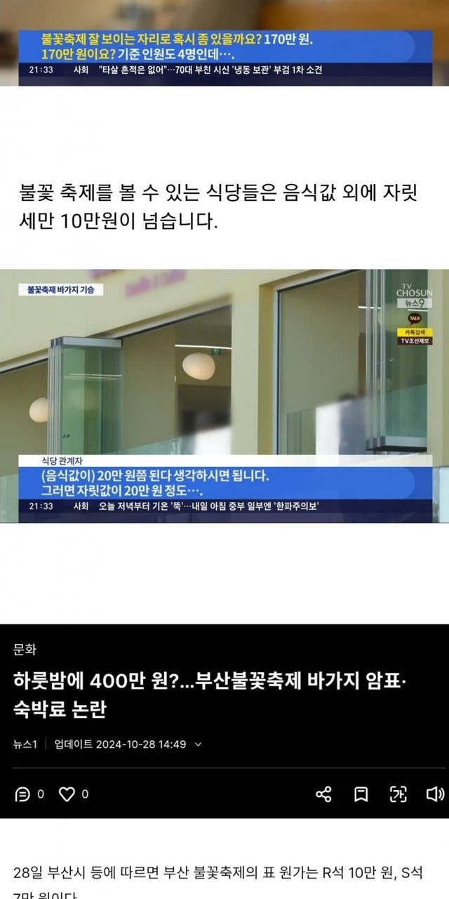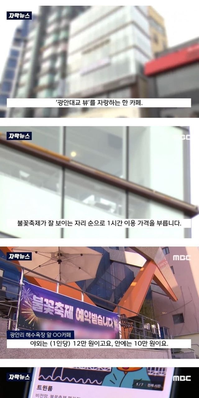 매년 불꽃축제가 보이는 식당, 카페에서 자릿세로만 10만원, 20만원씩 받는데