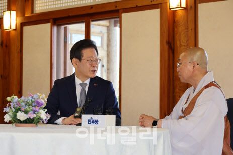 6일 법륜스님을 맞은 이 대표는 “세상이 하수상하고 사는 문제도, 먹는 문제도 힘들다”면서 “특히 평화 문제가 심각해졌다”고 우려했다. 그는 “제가 말씀을 좀 들어보고 싶다”면서 운을 뗐다.