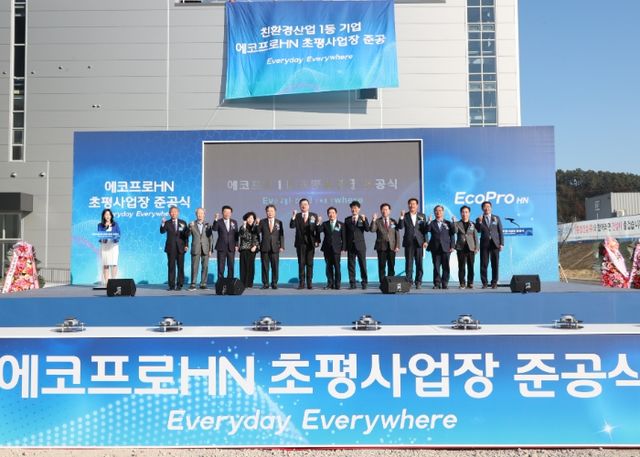 [파이낸셜경제=김예빈 기자] 진천 초평은암산업단지에 소재한 ㈜에코프로에이치엔 초평사업장 준공식이 6일 개최됐다.
