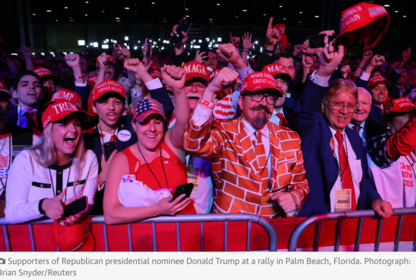 플로리다 팜비치에서 열린 집회에 모인 공화당 대선 후보 도널드 트럼프 지지자들 /가디언지 갈무리