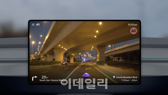 예를 들어 고속도로를 주행 중인 차량이 출구로 나가야 할 때 주행 상황을 고려해 차선 변경과 주행 경로를 차량의 디스플레이에 AR 이미지로 안내선으로 표시해 준다. 이때 헤드업디스플레이(HUD) 외에 내장용 디스플레이에도 전방 카메라로 촬영한 실제 도로 영상에 AR 이미지를 자연스럽게 분리·변형해 고속도로 노면 컬러 안내선처럼 운전자가 쉽게 따라갈 수 있도록 직관적인 주행 안내를 제공한다.