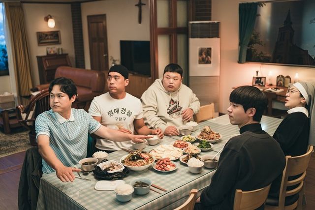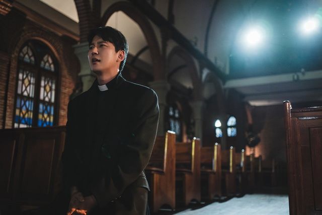 첫 방송을 단 이틀 앞둔 가운데 김남길이 경건한 식사 시간 중 특유의 급발진을 일으킨 ‘출격 준비’ 현장이 공개됐다. 극 중 구담 성당 식당에 모인 ‘구벤져스’ 멤버들이 화기애애한 식사를 즐기는 장면. 그러나 순간 김치 냉장고 위에 앉아 있던 김해일이 구대영(김성균), 오요한(고규필), 쏭삭(안창환), 김수녀(백지원), 한신부(전성우)를 지켜보다 갑자기 버럭 해 모두를 놀라게 한다. 더욱이 이후 김해일이 한밤중에 홀로 성전에 들어와 결연한 표정으로 죽은 이영준(정동환) 신부의 영정 앞에 무릎을 꿇고 한탄을 쏟아내며 눈물을 글썽이면서, 과연 김해일이 범상치 않은 행보를 보인 이유는 무엇일지 궁금증을 높인다.