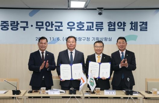 이날 협약식에는 김산 무안군수와 이호성 군의장, 류경기 중랑구청장과 최경보 구의장을 비롯해 양 도시 관계 공무원 30여 명이 참석했다.