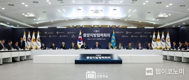 (웹이코노미) 윤석열 대통령은 11월 6일 오후 강원특별자치도청에서 제8회 중앙지방협력회의를 주재했다. 대통령은 지난 '22년 10월 제2회 중앙지방협력회의를 시작으로 울산광역시, 전라북도, 부산광역시, 경상북도, 서울특별시, 충청남도를 순회하며 모든 회의를 주재한 바 있다.