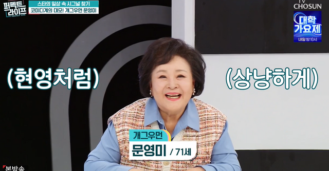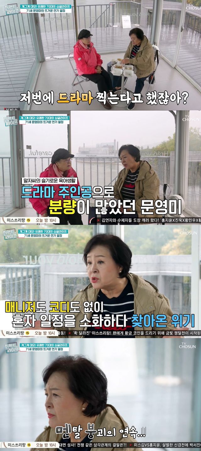 6일 방송된 TV조선 '퍼펙트 라이프'에는 '코미디계의 대모' 문영미가 출연해 일상을 공개했다.