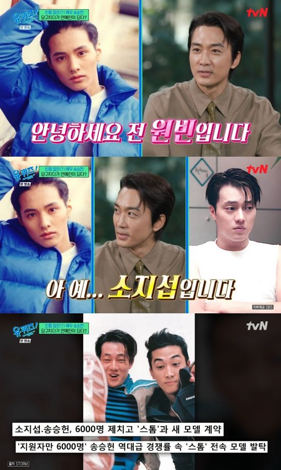 송승헌은 "다음 해에 친구들이랑 당구를 치고 있는데 친구 놈 하나가 그때만 해도 인터넷이 없을 때 아니냐. 신문 한 면에 '새 얼굴을 찾습니다. 2913 스톰' (광고가) 있었다. 친구가 신문을 가지고 '이게 네가 저번에 말했던 명함 준 그 회사인 거 같아. 너 사진 보내봐. 그분들한테 유리하지 않겠어?'라고 하더라. '그런 거 전혀 자신도 없고 생각도 없고 무슨 내가 모델이야' 했다"라며 설명했다.