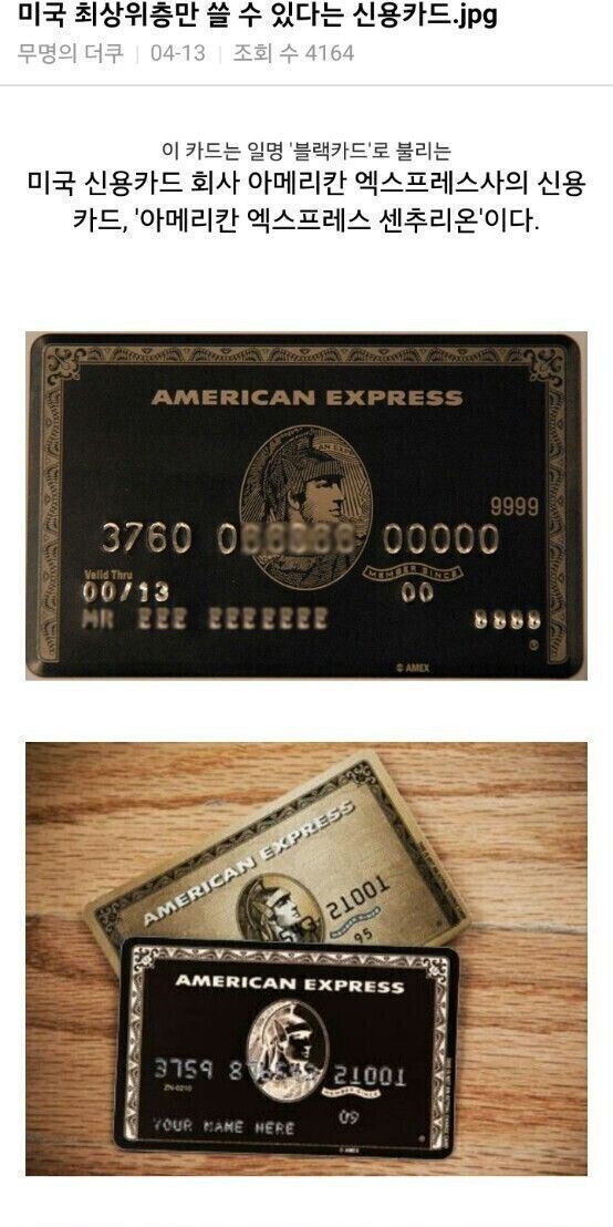 미국 최상류층만 쓸 수 있다는 신용카드.