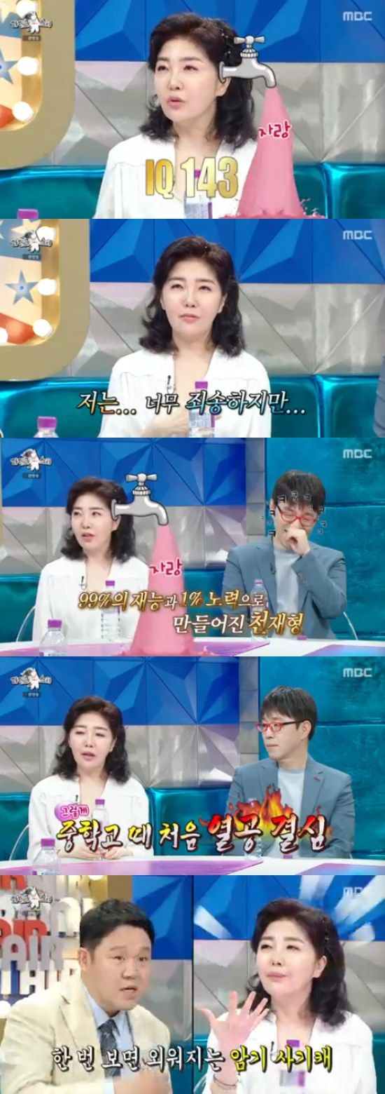 그러면서 "제가 고2 겨울 방학 때 서울대 의대를 가기로 결심했다. 그래서 공부 한 달 반정도 열심히 했다. 그랬더니 모의고사 대구 1등, 여자 전국 수석을 했다"고 말해 모두를 깜짝 놀라게 했다.