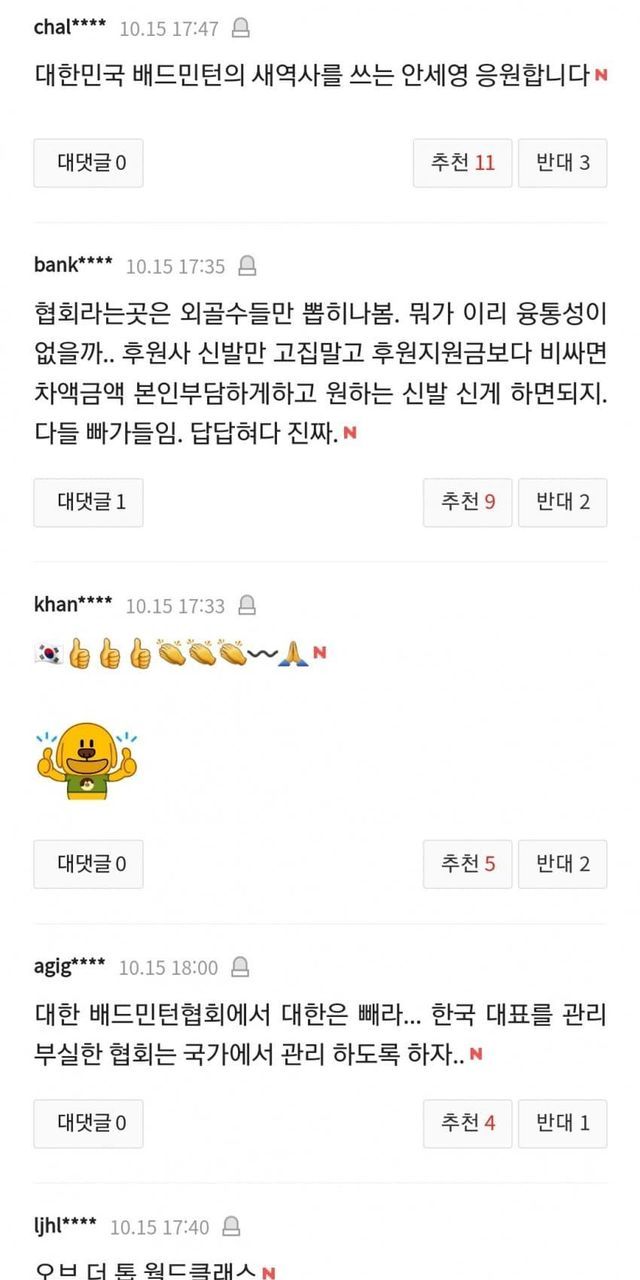 -“나 홀로 특혜는 싫어” 안세영, 국대 후원사 경기화 신고 쾌승