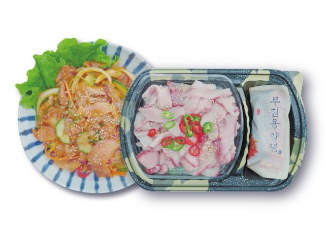 기존 대형마트의 무침회는 자숙 문어, 골뱅이 등 데친 연체류와 패류로 구성했지만 이번 무침회는 활어 기반의 실제 생선회와 무침 전용 소스, 채소까지 함께 구성했다.