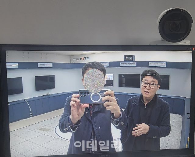 기자가 5일 본 한국전자통신연구원(ETRI) 사이버보안연구본부에 설치된 CCTV화면 속 영상에는 공항 출입국장 심사장을 빠져나온 다양한 사람들이 초록색 박스로 표시된다. 그런데 특정 인물들은 빨간색 박스와 함께 ‘우범여행자’라고 적혀 있다. 이들이 움직일 때마다 박스가 움직이면서 추적이 이뤄진다.