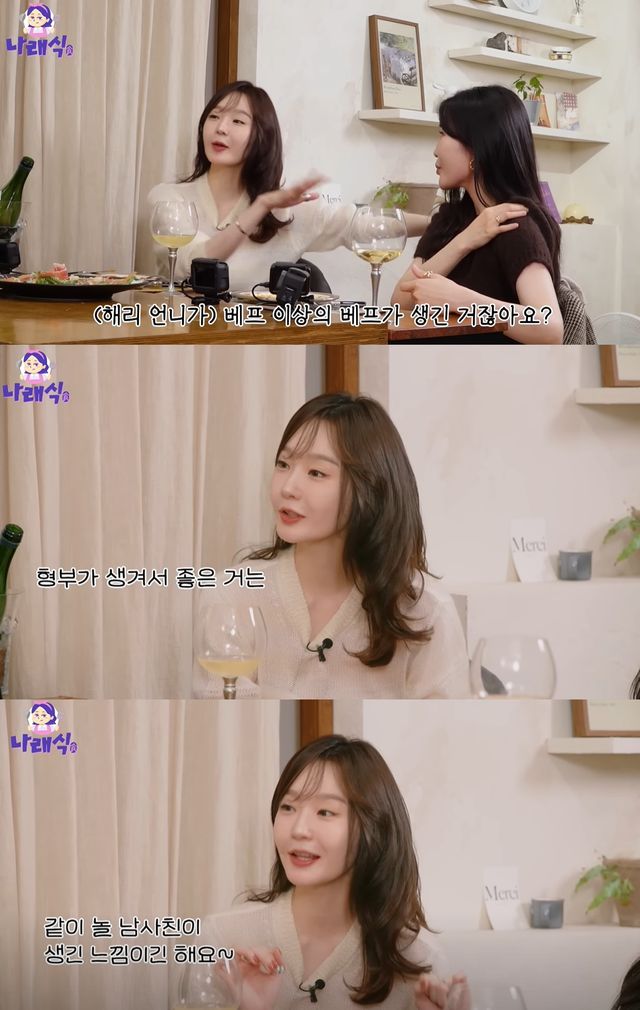 박나래는 "신혼부부니까 둘만 여행 가고 싶거나 그렇진 않냐"고 물었고, 이에 이해리는 "전 세계 구글링을 잘 돌린다. 그래서 오빠든 저도 어디 가서 식당 예약하고 이런 걸 귀찮아하는 편이다. 강민경이 그걸 다 해주니까 너무 좋다"고 답했다.
