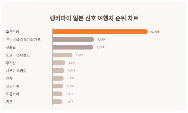 ▲일본 선호 여행지 트렌드 지수 분석 결과 ⓒ랭키파이