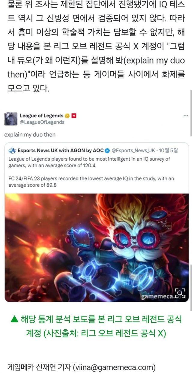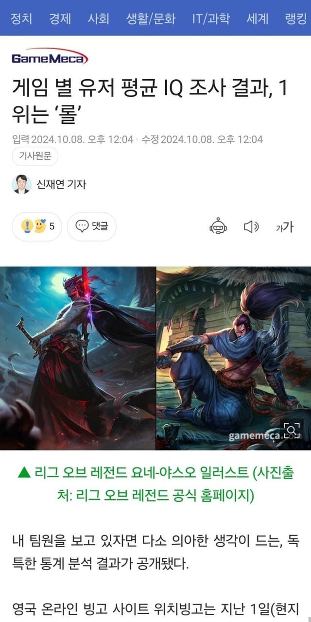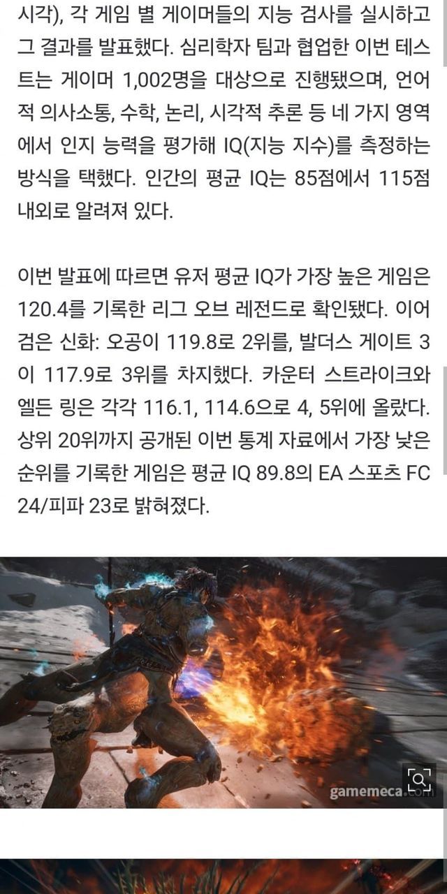 게임 별 유저 평균 IQ 조사 결과, 1위는..