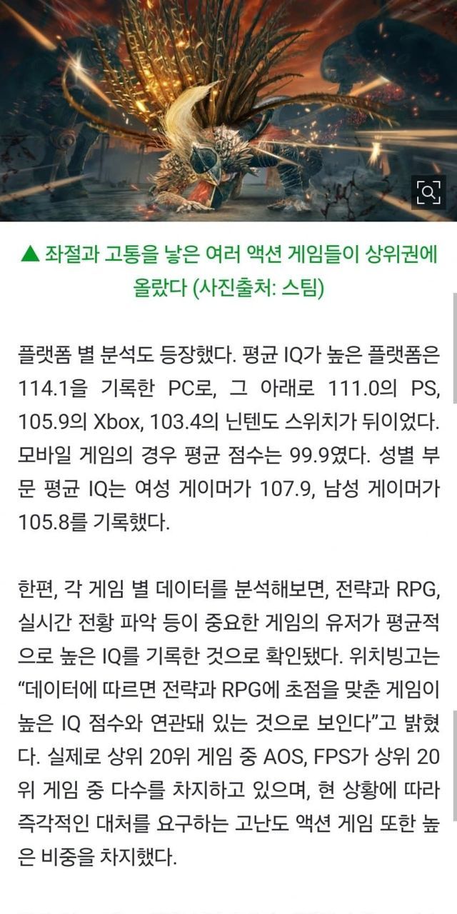 -게임 별 유저 평균 IQ 조사 결과, 1위는..