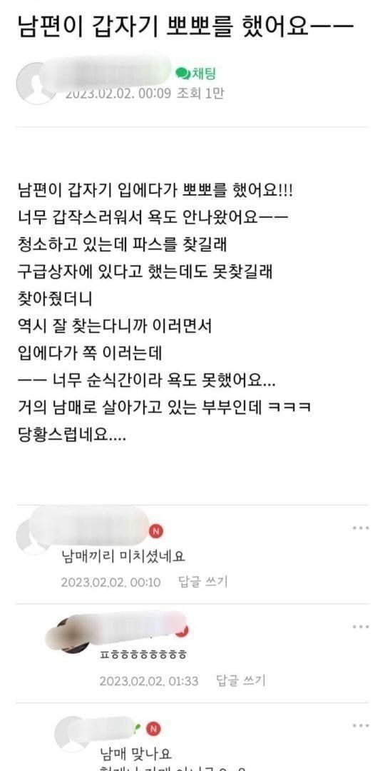 남편이 갑자기 뽀뽀를 했어요.