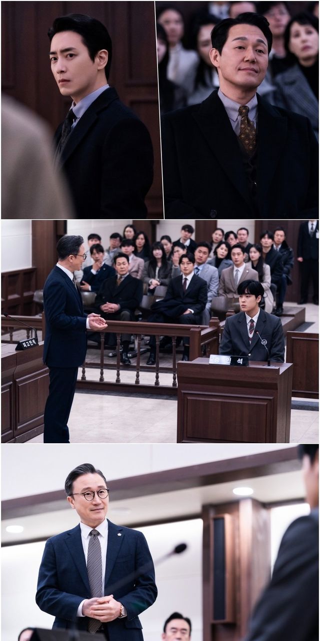 남완성과 남겨레 측 변호인으로 강원철이 등판하면서 새 국면을 맞은 가운데, 이날 공개된 사진에는 남겨레의 마약혐의를 둘러싼 재판이 한창이다. 아들의 죄를 덮기 위해 남완성이 꾸며낸 것과 다름없는 자리. 엄중한 분위기 속 남겨레에게 질문을 건네는 강원철의 진지한 표정이 눈길을 끈다. 방청석에서 포착된 서동재, 남완성의 상반된 분위기도 이목을 집중시킨다. 어딘가 심각한 서동재와 달리 여유로운 미소를 짓는 남완성의 속내는 무엇일지 궁금증을 증폭시킨다.