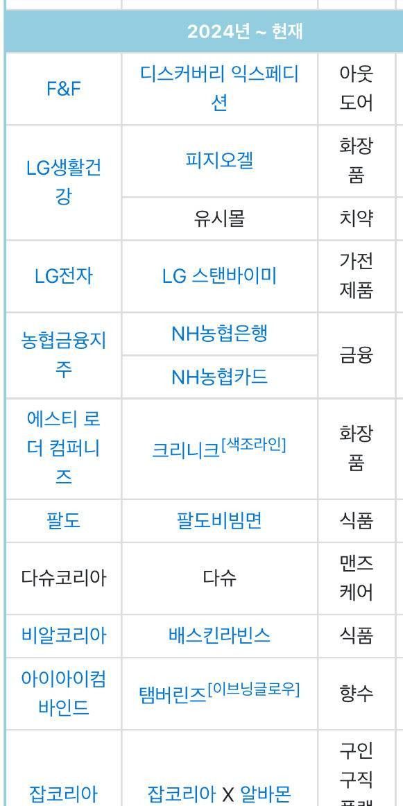 현재 공개된 것만 16개광고모델료가 7~9억원 사이라고 하니 100억원은 우습게 범